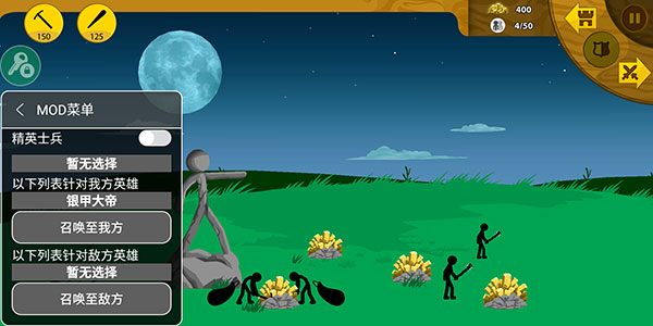 至于火柴人战争遗产银甲大帝版本身,除了拥有大家心心念念的银角大王之外,其实还具备了许多其他类型的兵种模组,例如狮鹫大帝、黄金矛士、精英矛士、精英弓箭手、钻地僵尸等等。更重要的是,这些模组全都被收纳进了内置的MOD菜单中,玩家们可以随时召唤它们来为自己作战。并且有了这些强力兵种地帮助,玩家们的通关效率也是得到了大大的增强。使得玩家从此之后不用再辛辛苦苦地收集资源,现在一步就能搞定。如果你也想试试全新的模组,那就赶紧来下载火柴人战争遗产银甲大帝版试试吧!