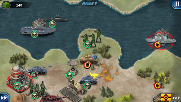 10、战役11,这关刚开始的航母省着点用,也要护着点战列舰,首先掩护陆军占领中间的岛,获得盒子币后就开始出潜艇打击敌人海军。保护好航母以及战列舰。