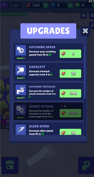 游戏中的关卡设计从简单到复杂,随着进度推进,敌人的强度也会不断提升。玩家需要利用收集的物品打造武器装备,并通过基因强化毒液的各项属性,比如攻击力和生命值。虽然操作方式主要依赖陀螺仪控制飞船,但滑动屏幕的操作手感还不错。