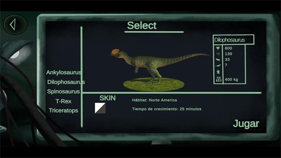 2、点击play后可以选择不同的恐龙,有五种不同的恐龙可以选择。