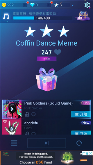 2、选择你要玩的歌曲,然后点击开始游戏;