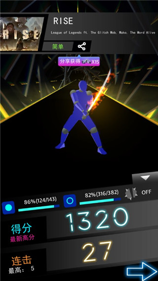 3、节奏感强的游戏,在挥剑的过程中忍不住让身体动起来,切割音符完成挑战