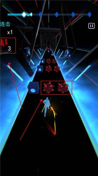 4、开跑后,这种方块我们就可以直接挥砍,连续挥砍不漏可以增加连击数