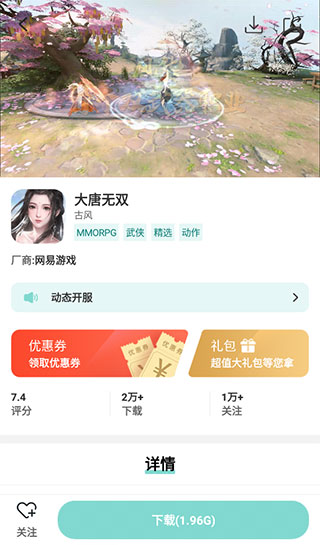4、选择感兴趣的点击进入,下滑可以查看详情,点击下载就可以试玩了,右上角还可以分享给好友。