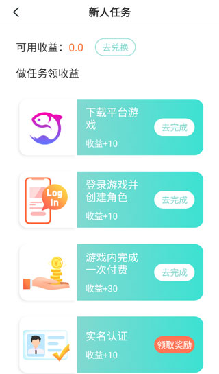 5、在收益中心可以看到自己每天能够完成的任务,针对新人还有专属的任务。
