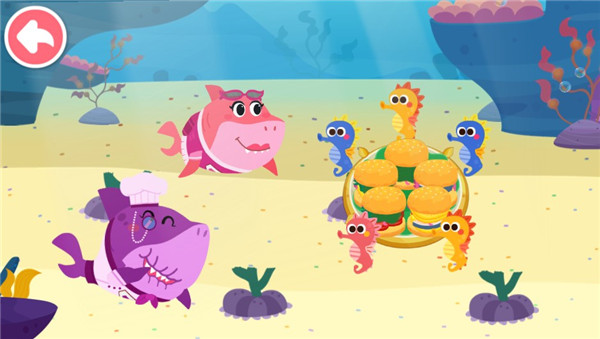 3、在奇妙鲨鱼帮帮队游戏里,帮帮队要寻找失散的水母宝宝、赶跑在神殿捣乱的章鱼、为海马制作虾堡。