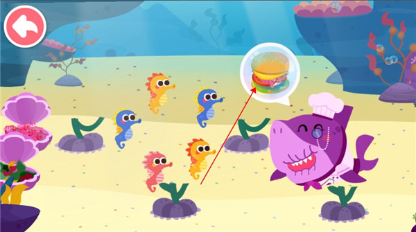 3、玩家需要和海马宝宝们收集一些做汉堡的材料。