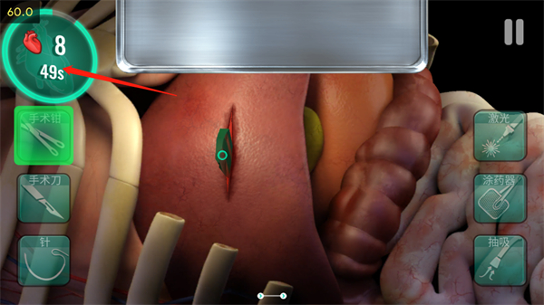 4、开始第一个手术,心脏代表难度,数目越低难度越高,限时2分钟。