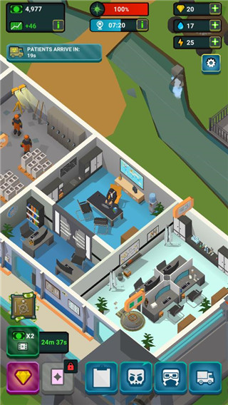 僵尸医院大亨是一款以僵尸治疗为主题设定全新模拟经营类养成游戏。游戏中其不仅拥有着整体简约高清的3D画风、场景、及人物等设计,提供了各种各样的僵尸群体、多样性的pk挑战、和更多的冒险活动等你参与,而且针对于玩法上,相比较于治疗普通病人经营游戏不大一样的是,如果在治愈过程中不给予僵尸足够的关注,安抚他们的情绪,提高病房的舒适度,并为他们提供一些可以消遣的项目,他们很有可能暴走咬伤医务人员,直接让这些花大价钱雇来的员工集体下线。故此在游戏中,玩家不仅需要从小型诊所开始,通过不断雇用人员,建造东西,为医护人员提供高质量的设备,比如为病房添置桌椅电视,安装马桶淋浴,升级通风系统等,扩大娱乐场所并装备指挥所,并竭尽所能将其转变为现代化的综合大楼,以应对世界上最危险的患者之外。你也还需要不断的与各个强大的丧尸进行游戏比拼,找到了对该病毒的治疗方法,治愈感染者并尝试避免爆发攻击。让他们最终不变成僵尸,为人类最终的希望不断的努力!