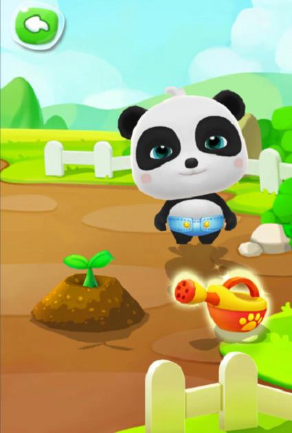 5、再点击奇奇前方“浇水壶”的图案,加以浇水,添水使坑中伸长出叶子。