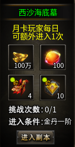 奖励:元宝x100万、修炼丹x100、时装碎片x4、金刚伞碎片x10
