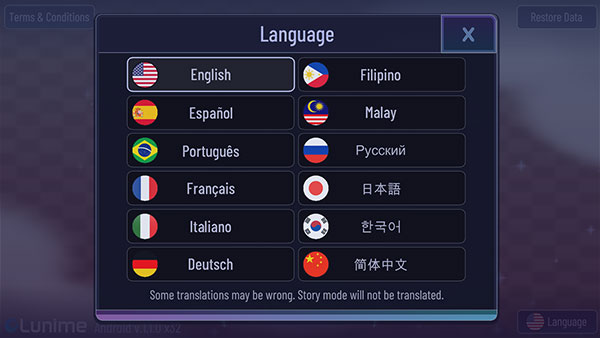 1、在本站下载安装好游戏后,进入游戏,点击右下角语言。