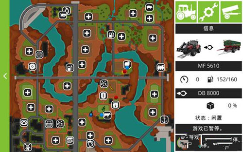 4、屏幕上方有我们车辆剩下的油量、麦子收割是否装满,如果装满了,就要将收割的麦子倒入拖拉机中。
