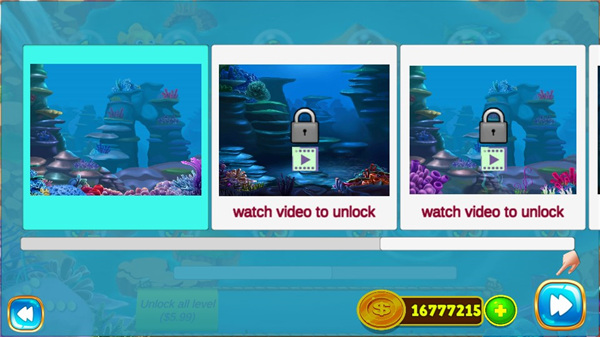 游戏音乐优美动听,各种音效也不错。你在游戏中可以听到气泡的咕噜咕噜的声音,还有海浪的声音,哗啦哗啦,来一起在游戏中体验海底的感觉吧。