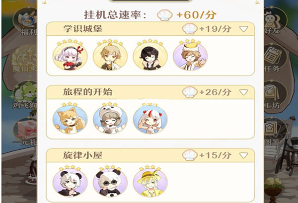柠檬+熊猫:可以触发【旋律小屋】羁绊,小幅加快资源产出。