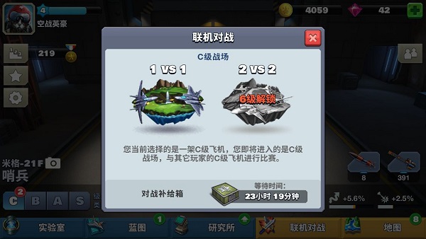 单独PK,随机选三架飞机,组建最强武器装备,一局定胜负!