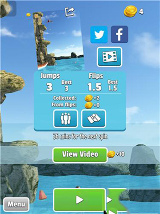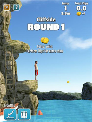 翻转跳水最新版是一款以跳水为主题的体育竞技手游,采用动画卡通风格设计,游戏的画面精美,人物与场景的制作也十分逼真。游戏的操作也非常的简单,在游戏中,玩家需控制人物起跳时机,长按屏幕完成空中动作,最后达成完美的入水角度,当然如果想要拿到高分,还是需要角色的头部或脚部笔直入水才算达标,如果玩家不小心让跳水运动员撞到旁边的石头上,就会Game Over。在游戏中的跳水场地也不是在普通的泳池内,而是在悬崖、灯塔、轮船等奇奇怪怪的场景进行极限跳水,所在环境越复杂得分越高。另外,游戏中玩家可以解锁不同的跳水动作,除了专业的,还有其他一些稀奇古怪的姿势,尤其当这些动作由发挥极不稳定的非专业人物完成时,格外奇葩搞笑。并且,游戏提供了超过50个不同的关卡,并且还可以解锁许多不同的人物,当然,你也可以将自己的成绩分享与其他玩家对比排名,耐玩度非常不错。