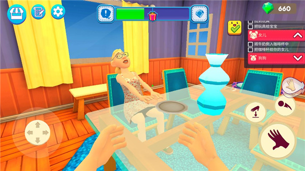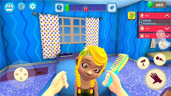 在这里,玩家主要通过扮演一名准妈妈来照顾宝宝的饮食起居,简单的操作按钮,开放式的游戏体验,游戏中你可以自由分配时间做你任何想要的事情,但前提是要照顾好宝宝哦。同时也要时刻关注家里大大小小的事情,比如客人来了,需要将蛋糕递给朋友,还需要打扫狗狗的床以及泡咖啡给丈夫,非常的忙,在这里可以体验到当妈妈的辛苦。除此之外在妈妈模拟器游戏中文版内,还需要完成不同的任务,这样可以获得相对应的报酬,然后可以给宝宝换上不同的衣服和造型。