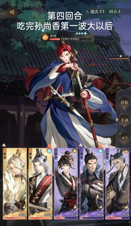 2、第三回合:颜良放大抗伤害并且还活着,其他人放大。