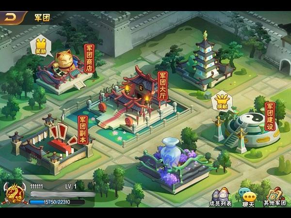 军团系统中包括:军团商店、军团副本、军团大厅、军团建设。军团建设主要包含初级建设、中级建设、高级建设。