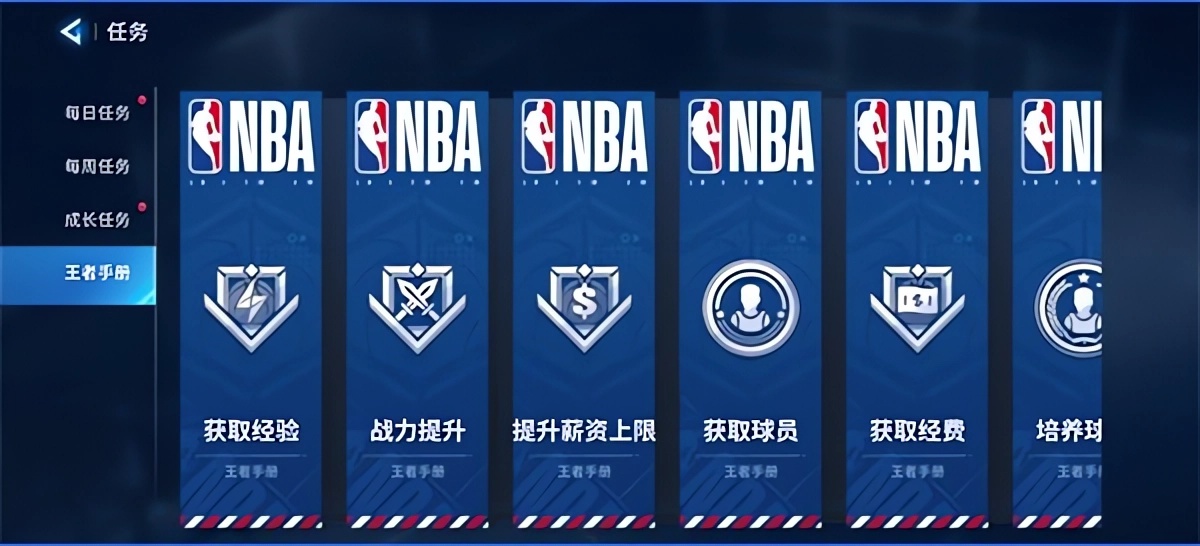 成长系统是类似与成就的终身系统,每个任务可以完成一次,达到不同阶段的成就和目标可以获得对应奖励,球员招募券、教练碎片、展品碎片等道具应有尽有,也是攒绑钻的渠道之一,很多养成系经理人以完成成长任务为游戏目标。