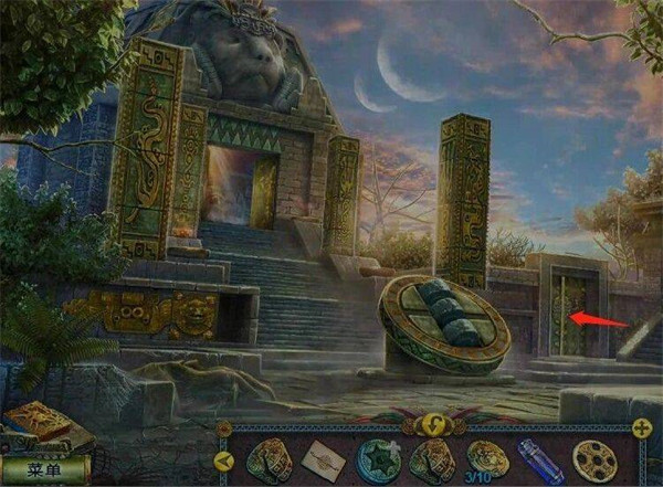 1、在拿到圆盘后,点击下图箭头指向的地方。