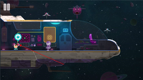 3、游戏内容包括解决一些时空难题、寻找隐秘的可用物品、推箱子小玩法、与外星人周旋等等。整体采用了略带童趣的卡通风格,有些关卡还需要利用一些匪夷所思的方法来解决。