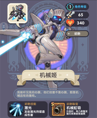 机械姬是比较强力的职业了,无论是新手玩家,还是平民玩家,优先选择机械姬是比较好的,其奥义技能是发射激光,能够对敌人造成持续的伤害,是比较强力的技能的,并且初始秘宝是S级的,能够触发磁石的效果,吸取道具,是非常不错的技能的。