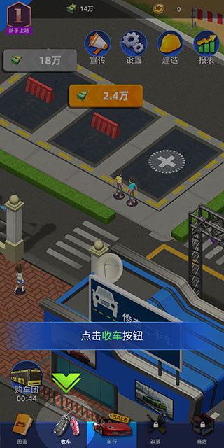 1、欢迎你,老板!这里是传奇二手车行!看,有顾客来了,我们点击下方收车按钮。