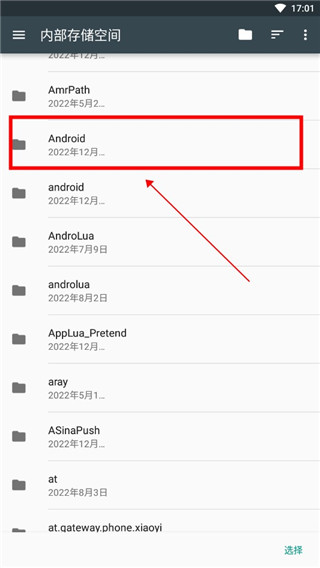 3、开启【全部文件】后,找到【Android】,不要选择前面带【.】的同名文件。