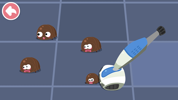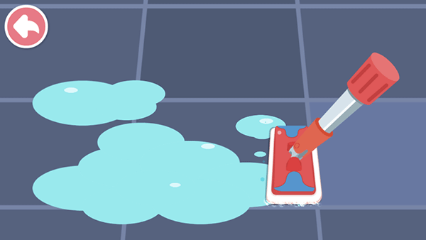 3、然后开始清洁,首先从地板开始,拖动道具吸尘器将污垢全部吸走(锻炼宝宝手眼协调能力);