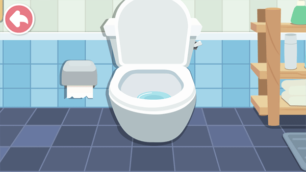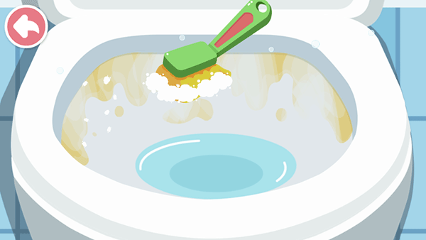 卫生间里好脏,快来打扫一下!清理讨厌的小虫子,再给马桶喷上清洁剂和杀菌药水,刷完一按冲水建——咦,水下不去?原来是水管坏了,宝宝快来接好它!(锻炼宝宝脑力)