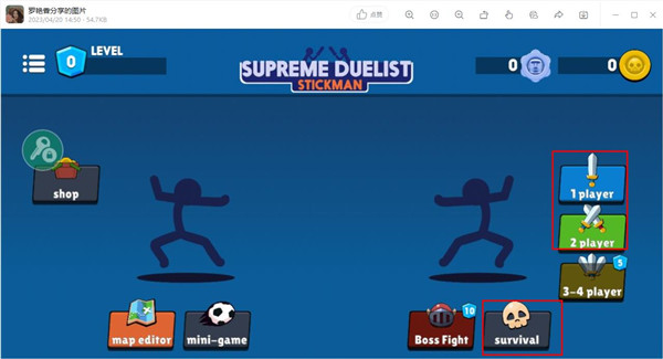 1、下载并安装本站提供的火柴人至高对决,打开进入游戏后界面如下:游戏丰富的挑战,有着多个模式可供选择,