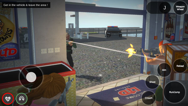 2、左下角按钮可以控制角色自由移动,右侧屏幕滑动调整视野和方向,左上角是当前的任务,需要在超市内收集钞票。