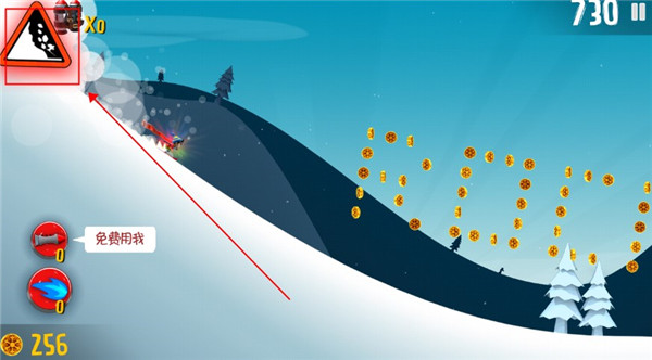 7、如果右上角的雪崩标志疯狂晃动和闪烁,那就代表雪崩就快追上你了