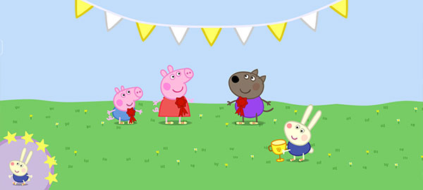 1、5个充满乐趣的游戏,里面有佩奇、乔治和他们的家人和朋友。