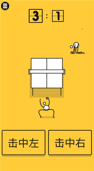 4、你只需左右快速点击屏幕,控制滑稽又可爱的小人物将乒乓球迅速打回去即可