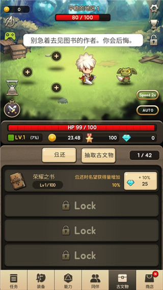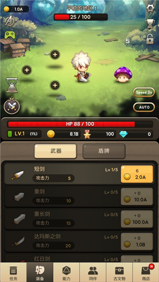 进攻之神,一般又叫God of Attack。这是一款萌系挂机放置类的角色冒险游戏,游戏界面非常清新,角色设计也比较萌萌哒,有点日系的意思,卡通人物的设计让整个游戏变得更加有趣和可爱。同时游戏玩法丰富,主角可以带3个同伴一起打怪,点击屏幕时主角发起一次攻击,不点的话,主角大概2秒自动砍一刀,同伴只会自动攻击,频率比主角慢,主角和怪物都会弹出对话框,甚至主角还会劝你氪点。游戏可以通过多种方式获得同伴,比如过打怪随机掉啦,悬赏通缉啦,每次最多派出3个同伴帮你打怪,这也是跟其他点击类游戏有所不同的,基本上大部分的点击类游戏,同伴都只能靠买,同伴有不同的技能,合理搭配同伴也是这个游戏的亮点之一。进攻之神手游中玩家需要完成各种任务,任务是赚钱的主要来源,比砍怪好赚多了,购买任务后每隔一段时间就可以获得收益,越往下每次收益时间越长,收益也越来越多,只是这个任务系统比较简单,只是普通的购买和升级,并没有什么升到100级收入就会暴涨或者特殊buff之类的。总而言之,游戏非常有趣,可以为玩家带来沉浸式的游戏体验感!有兴趣的小伙伴不妨来下载进攻之神手游畅玩一番吧!