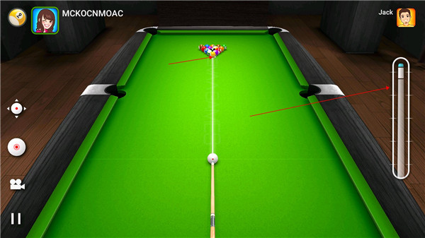 5、移动球杆前的光标可以调整打击角度,拖动右边调整击打力度。