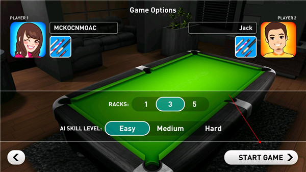 1、游戏开始,选择你要体验的玩法模式,8球、9球都可随意选择。