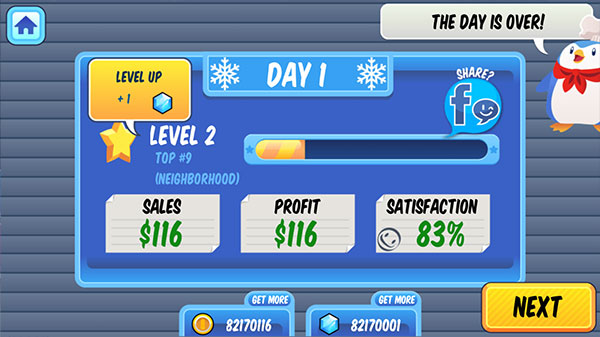 6、努力制作符合要求的冰淇淋,别让顾客等待太久,努力获得金币,点击NENT可以开始下一关卡!