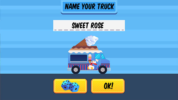 2、给自己的冰淇淋车店选择或者创建一个昵称,点击ok。