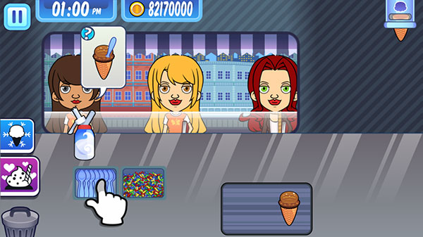 游戏中会有很多不同的顾客来你店里,比如社会大哥、异次元访客等等,他们点的冰淇淋口味和包装要求都不一样,你需要根据他们的需求快速制作,如果顺序放错原料的话就会失败哦!如果做出的冰淇淋让顾客满意,他们会给你金币奖励,这些金币可以用来升级店铺、购买装饰或者解锁更多口味。