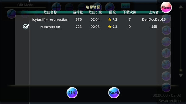 6、搜索结果出来后,选择你想要玩的谱面,并点击OK,游戏会提示你读取完毕,这时这个谱面已经成功的导入了你的游戏。