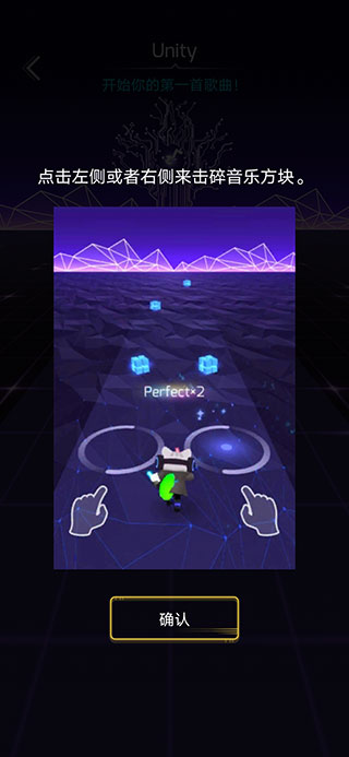 1、开局,先记住操作方式,点击左侧或者右侧来击碎音乐方块。