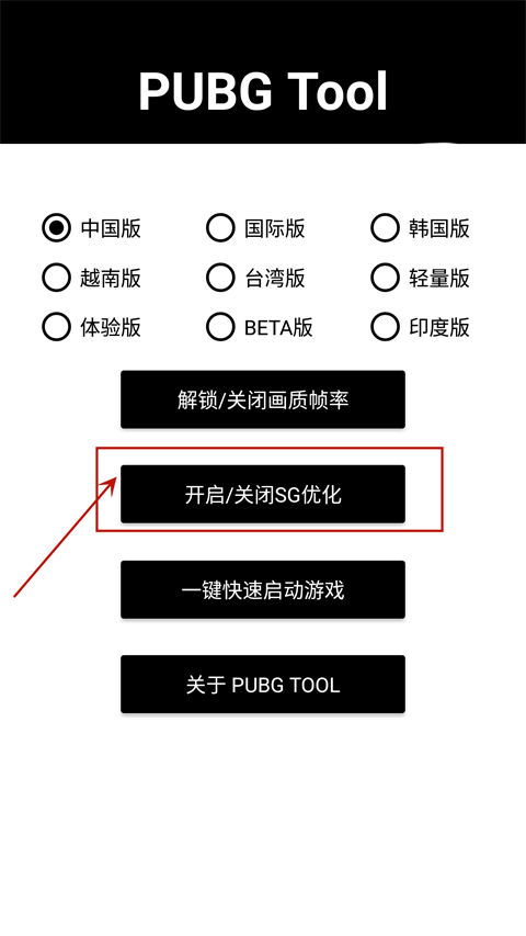 2、进阶方案:点击开启/关闭SG优化,再点击解锁/关闭画质帧率;