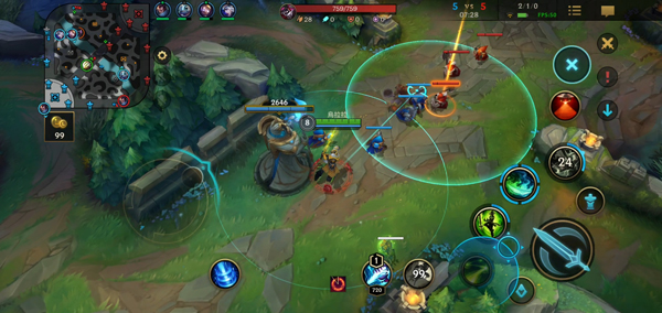 有了这颗普攻按钮搭配移动键所有ADC都能轻松变成微操的风筝神人,但游戏有时也会让你很难攻击你真的需要打的敌人,因为单纯的普攻将只能设定几种简单的目标,血量绝对最低的跟血量百分比最低的,这使得有时近战角色很难击杀你想要的目标,反而变成走向远方的敌人,好在,玩家也能长按普攻来选取敌人攻击,这部分就考验你的实力啰~
