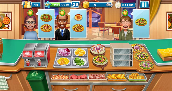 1、玩家能学会时间的搭配利用。招待各式各样的顾客,赚取盆满钵满。简单在萤幕上拖拽点击,你就可以体会到制作天下美食的快乐。