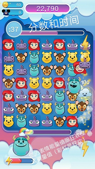 1、匹配表情符号以获得高分和解锁新角色,并收集超过400个迪斯尼和皮克斯表情符号字符和物品。