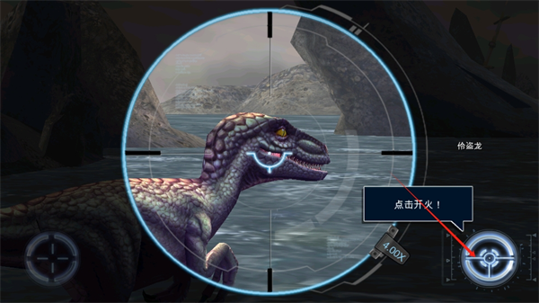 在操作上依和其他第一人称射击游戏基本一样,瞄准射击开火上弹,基本上就这几步,同时在屏幕左侧及右侧会有移动按键,这俩个键会在中后期起到很大作用,尤其是用来躲避冲过来的大型恐龙之类的。当然,把握时机也是至关重要的,追求极致(有强迫症)的玩家可以通过把握射击时间来打出更高的评分。
